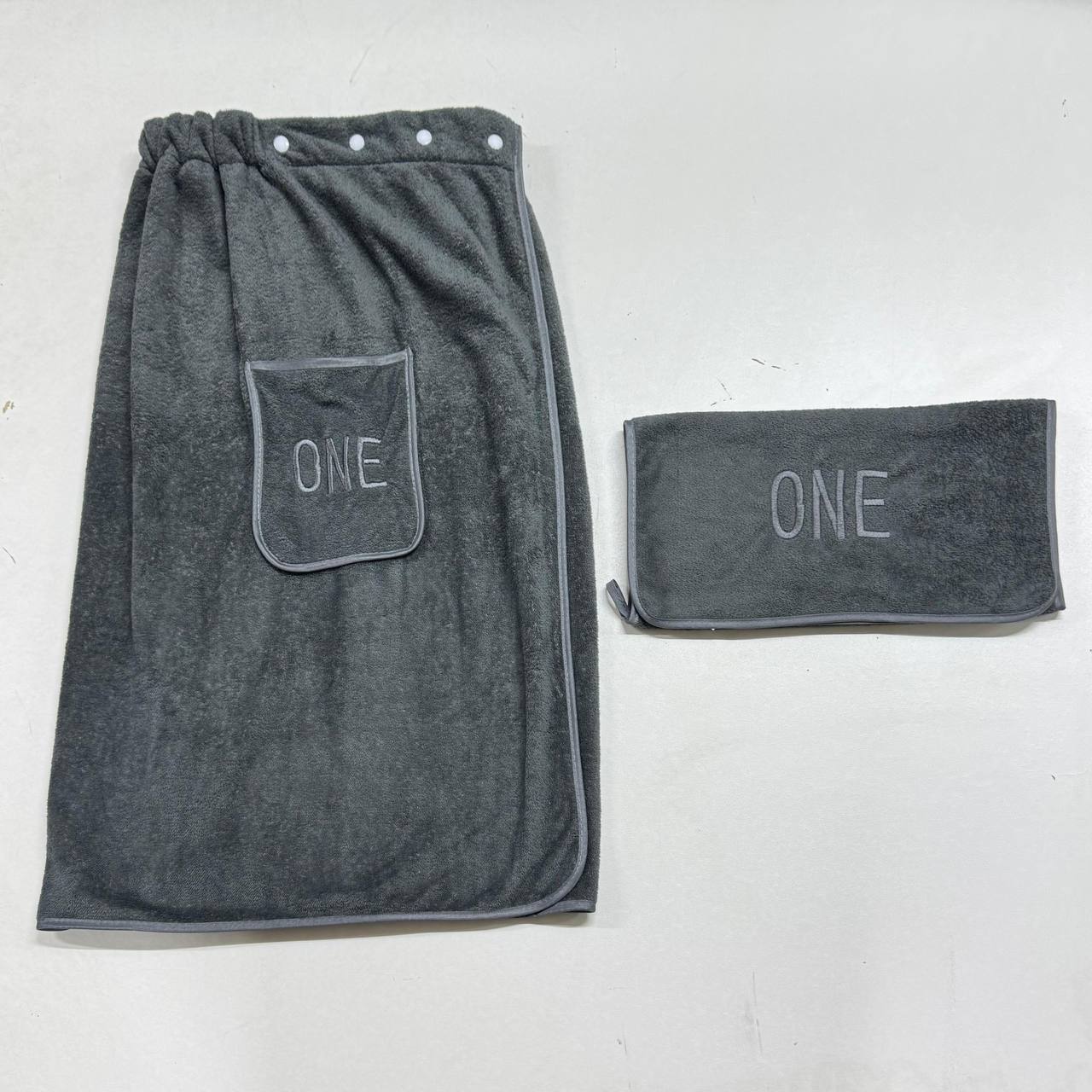 Банное полотенце-юбка тёмно-серого цвета — удобный и практичный аксессуар для бани, сауны и SPA. Модель фиксируется на поясе при помощи резинки и 4 клёпок, обеспечивая надёжную посадку и комфорт во время процедур.