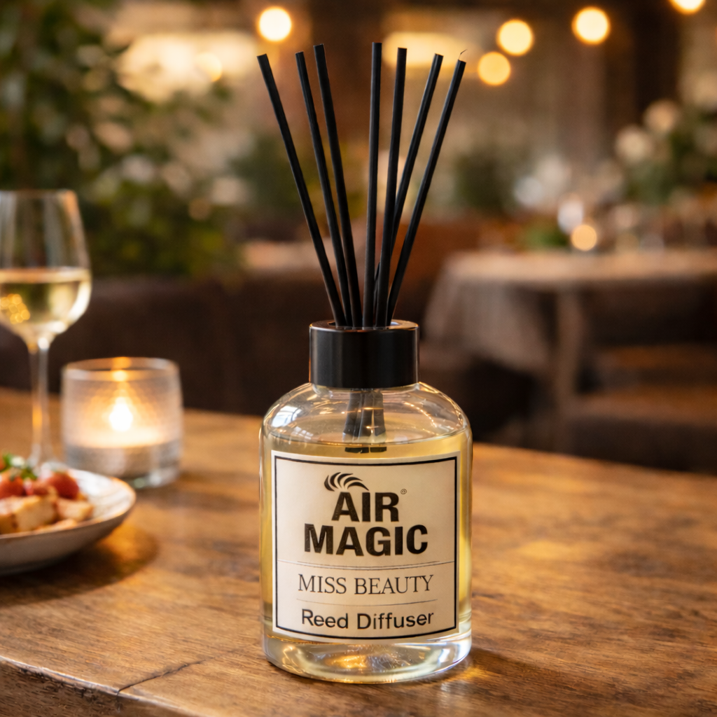 Парфюмированный диффузор AIR MAGIC MISS BEAUTY объёмом 110 мл — элегантное решение для создания нежной и привлекательной атмосферы в ресторанах, гостиницах, салонах красоты и бутиках г. Астана.