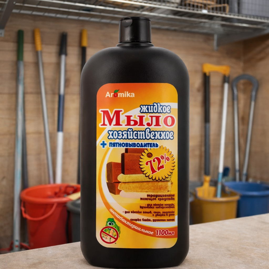 Профессиональное жидкое хозяйственное мыло Аромика объёмом 1100 мл с концентрацией 72% и антибактериальным эффектом — надёжное средство для ежедневной гигиены рук и очистки рабочих поверхностей в ресторанах, гостиницах, производственных кухнях и клининговых компаниях г. Астана.
