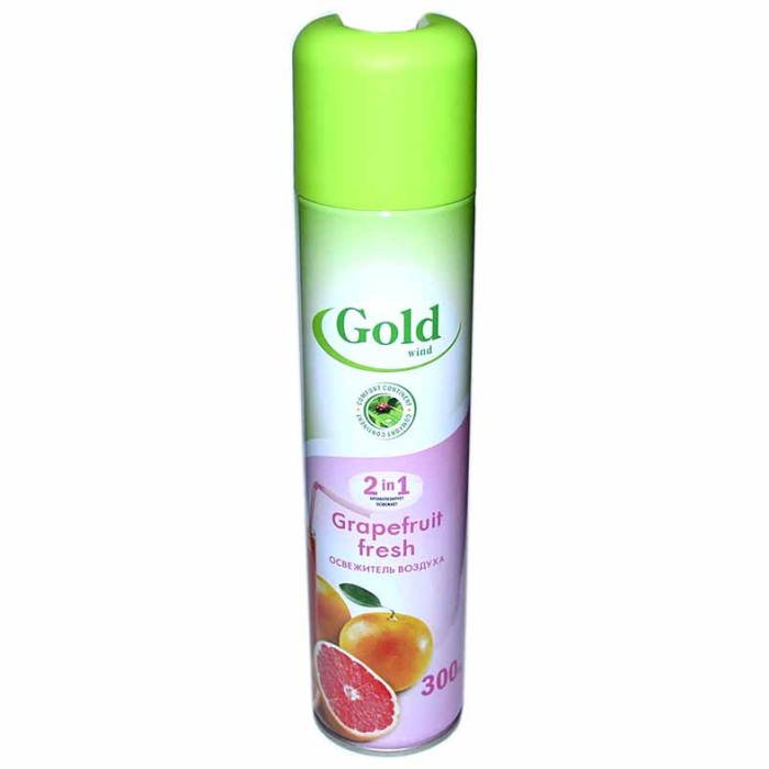 Освежитель воздуха Gold Wind «Грейпфрут» 300 мл предназначен для быстрого устранения неприятных запахов и наполнения помещения свежим цитрусовым ароматом. Ноты сочного грейпфрута создают ощущение чистоты и лёгкости.