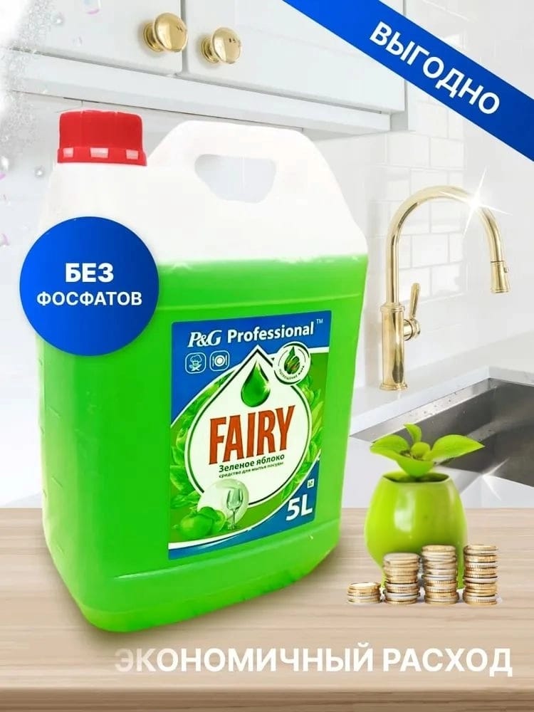Средство для мытья посуды Fairy — Зеленое яблоко, канистра 5 л — для HoReCa в Астане | Доставка 24 часа
