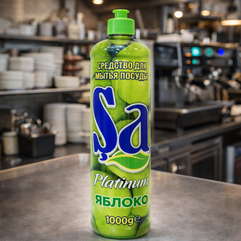 Средство для посуды SA «Яблоко» объёмом 1 литр — практичное решение для ручного мытья посуды на профессиональных кухнях г. Астана.