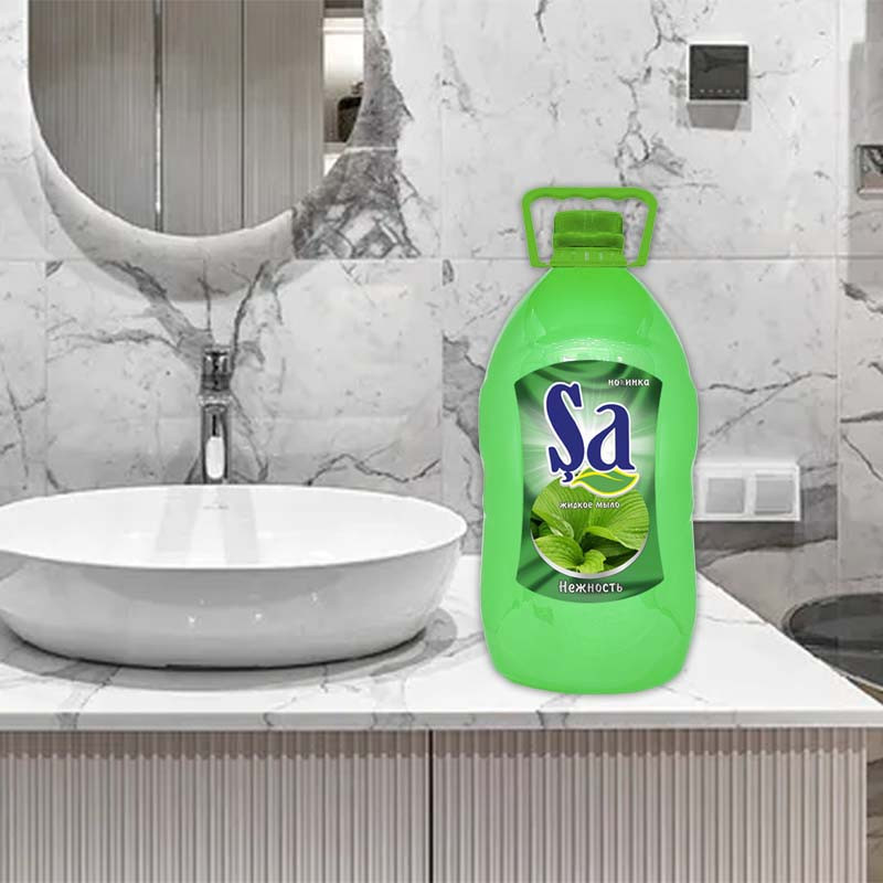 Профессиональное жидкое мыло SA «Нежность» объёмом 5 литров — мягкое и эффективное средство для ежедневной гигиены рук в ресторанах, гостиницах, торговых центрах и офисах г. Астана.